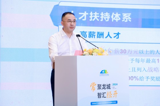 常州经开区机关党委专职副书记、人才办主任方琼明从经开区情况推介、双创载体推介、龙城英才政策、高层次人才补贴政策等方面向参会嘉宾做了推介。