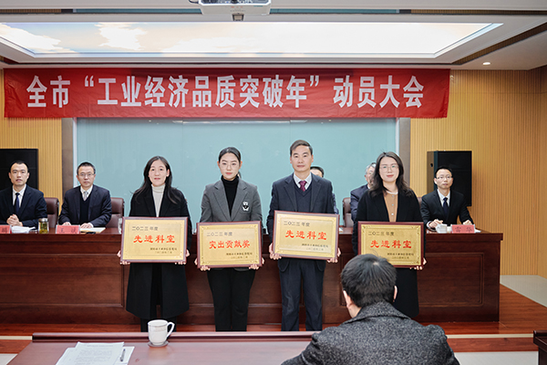 会议还传达了全市“品质城市突破年”动员大会精神,对2023年度先进科室进行了表彰。会上,产业投资科、信息化推进科分别作表态发言。