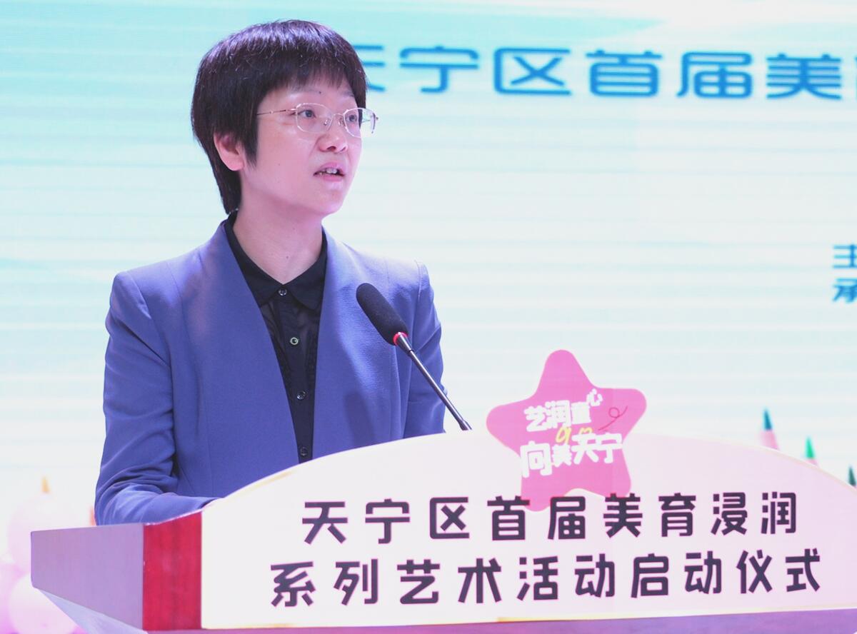天宁作为综改实验区,率先响应教育部加强美育工作的要求,进一步深化区域美育教学改革。美育工作的天宁贡献,离不开领导的引领与支持,天宁区副区长曹瑜在致辞中细数天宁美育工作取得的丰硕成果,阐述了举办此次美育浸润系列活动的重要意义,她还提出了几点希望:要在传承中坚守,在坚持立德树人中强美育茁壮之“根”;要在坚守中创新,在推进多元融合中开美育绚烂之“花”;要在创新中提升,在打造示范亮点中结美育普及之“果”。