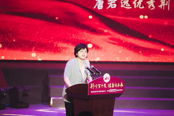 市委常委、市统战部部长、常州海外联谊会会长杨芬对荆川小学建校110周年表示热烈祝贺,并向长期以来关心支持常州发展的唐氏后裔,以及上海唐君远教育基金会致以敬意和感谢。她指出,荆川小学始终传承和发扬荆川精神,引领着一代代少年学子健康成长,于百十年的栉风沐雨中润泽一方。希望大家能充分汲取荆川精神“以天下为己任”的核心内涵,将荆川精神的感召转化为对国家和社会的责任感,立志报效祖国、服务人民、建设社会,把个人奋斗的“小目标”融入时代发展的“大蓝图”,为实现中华民族伟大复兴的中国梦而努力奋斗。